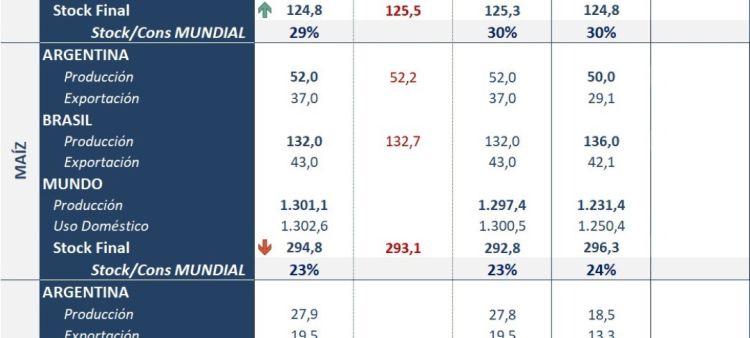 En este marco, el uso global de maíz avanzó a 1.302,6 Mt y el comercio internacional a 207,3 Mt. Se proyectaron mayores exportaciones para India, Rusia y Sudáfrica, mientras que las importaciones crecieron en Turquía y Marruecos y cayeron en Irán e Indonesia. Finalmente, los stocks finales mundiales aumentaron a 294,8 Mt, con subas destacadas en India, Sudáfrica y Brasil.